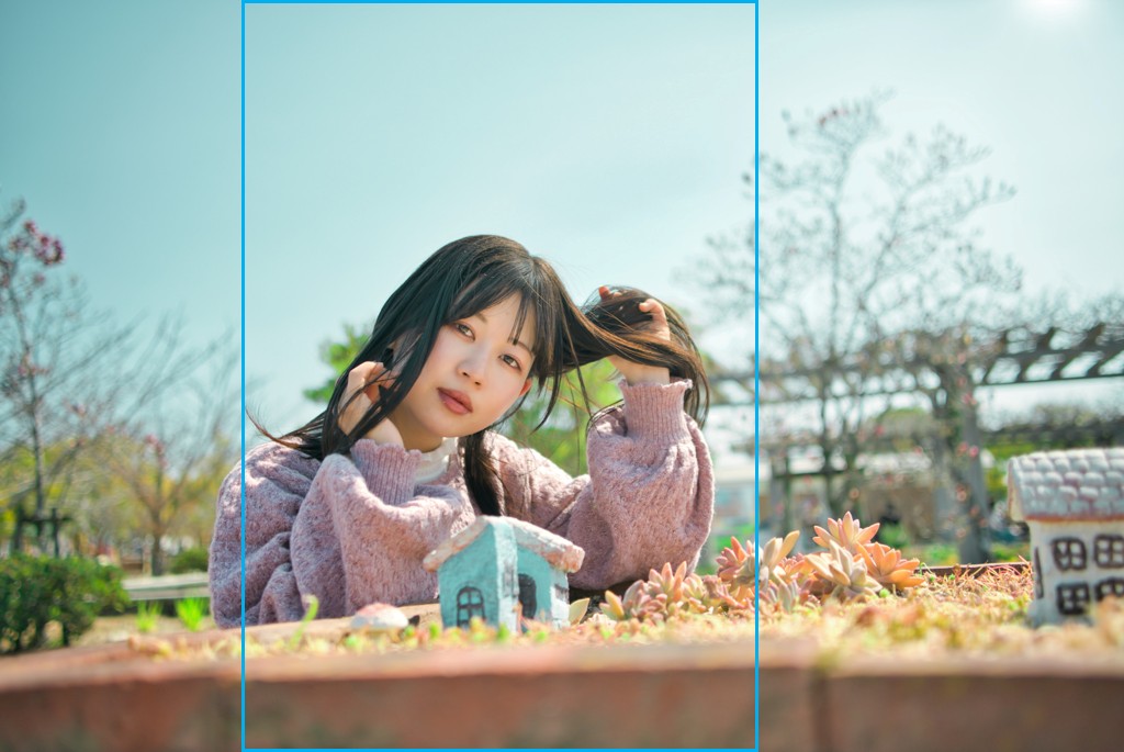 これはポートレートの王道とされる「50mm標準レンズ」とほぼ同等のパース(遠近感)。この一枚の写真からもう一つの焦点距離「標準レンズ」も引き出すことができるのです。