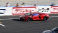 富士スピードウェイの観覧席から、電飾で縁取られた2台のマシンがホームストレートを駆け抜ける様子