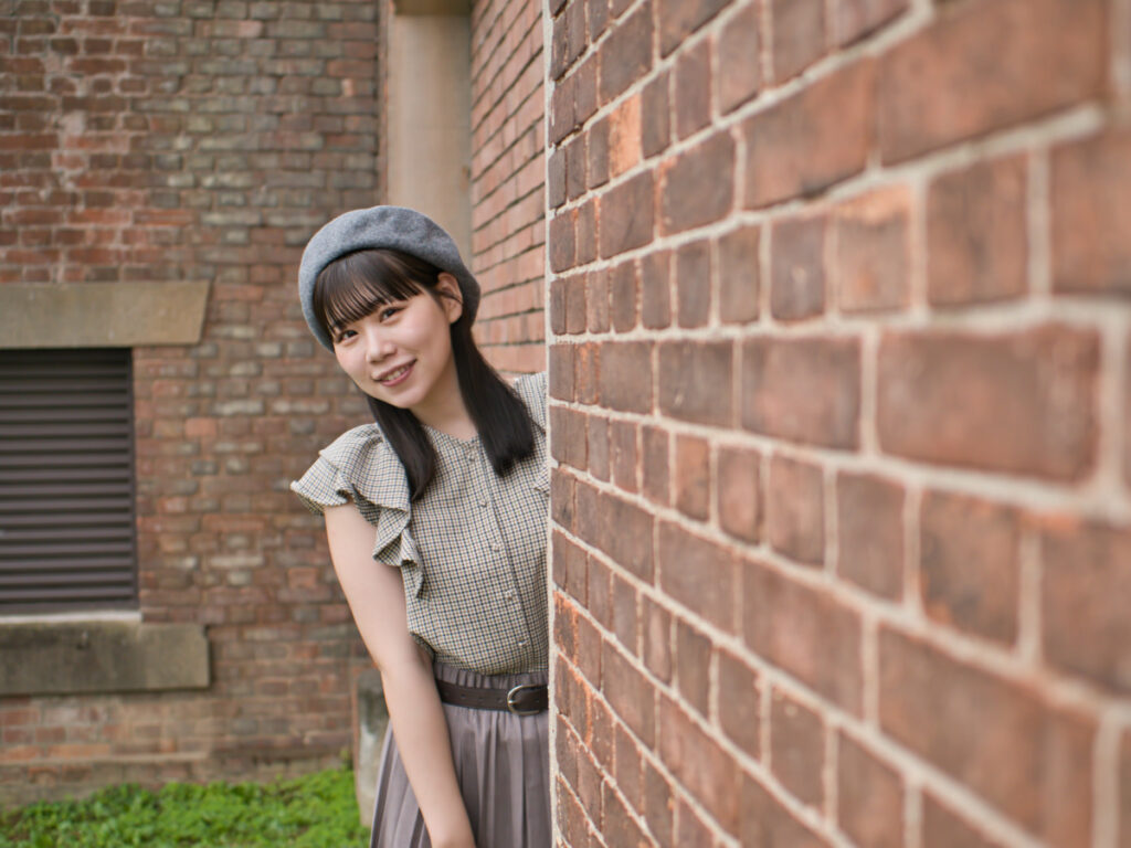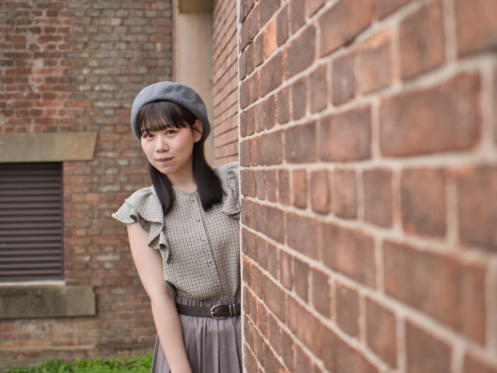 赤レンガの重厚な建物を背景に、一歩引けば物語の舞台としての広がりを。一歩寄れば、モデルのゆめのさんの繊細な表情を。レンズ交換という手間を捨て、被写体との対話に集中できる効率の良さは、ポートレート撮影において何にも代えがたいメリットをもたらしてくれます。